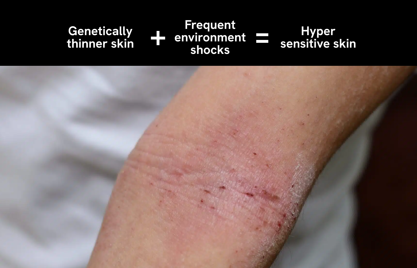 Due to our genetics and constant switching between the hot/moist outdoors and cold/dry indoors, our skin is more sensitive than normal. Our kids are 1.5X more likely to have eczema than the rest of the world. In adults, that goes up to 12X.