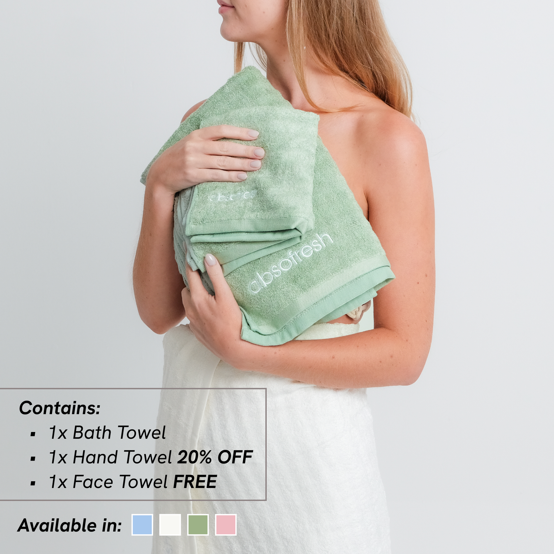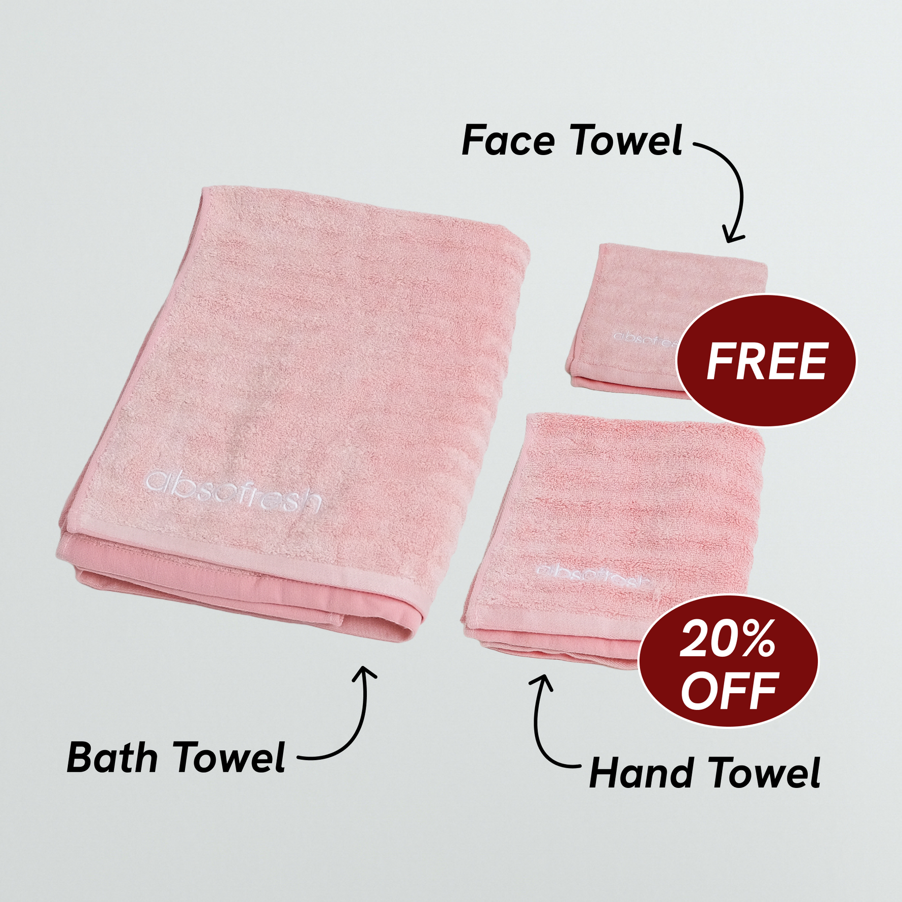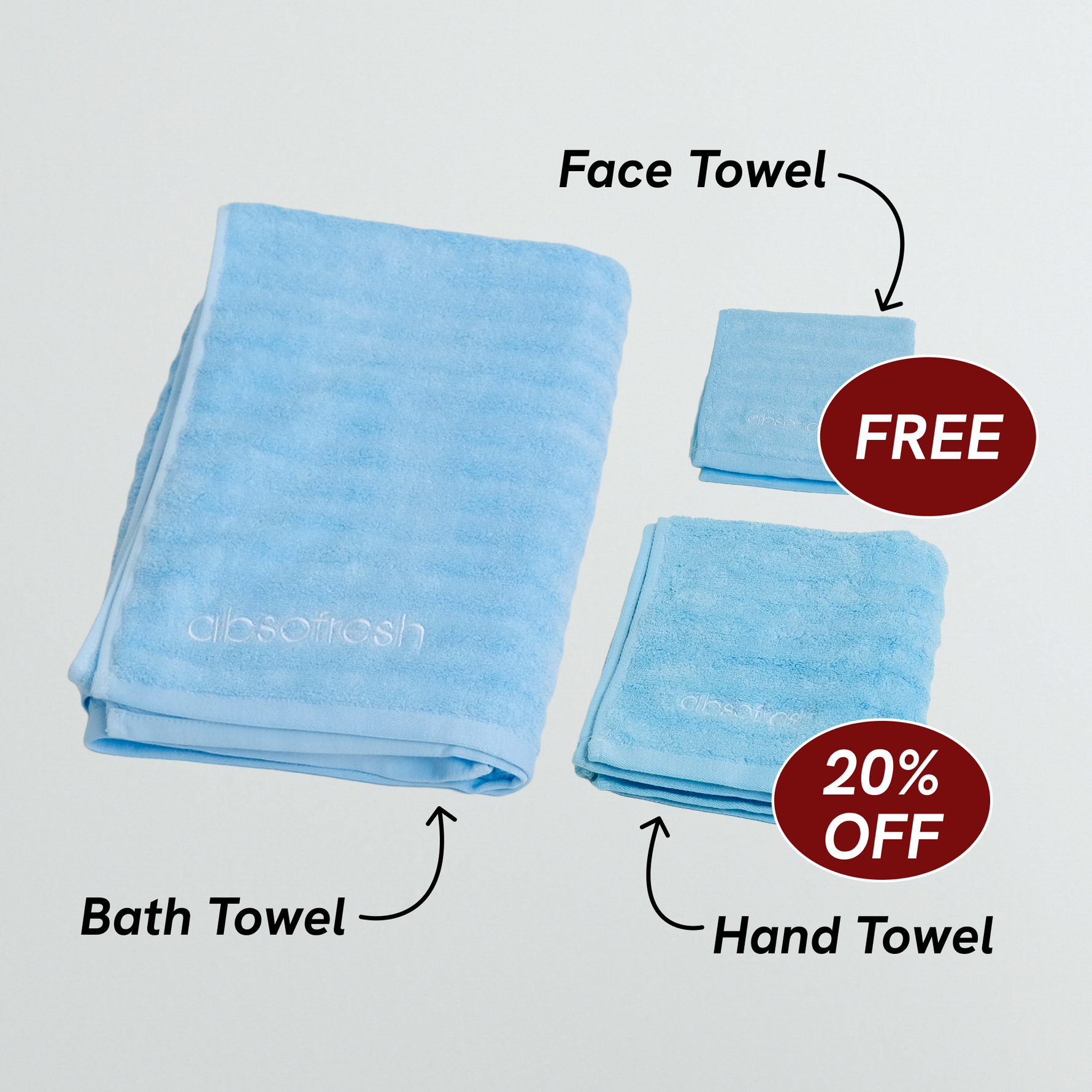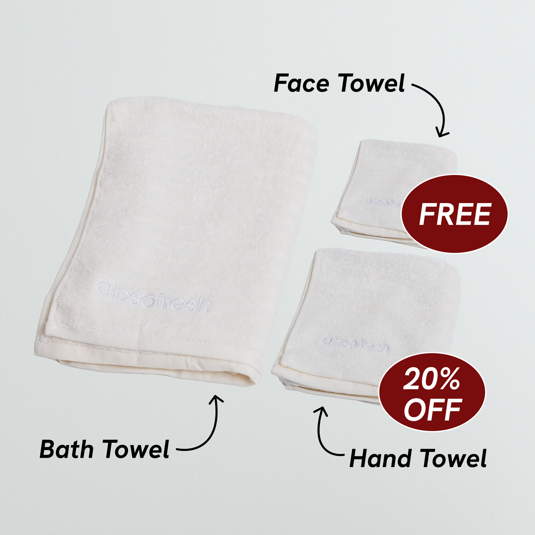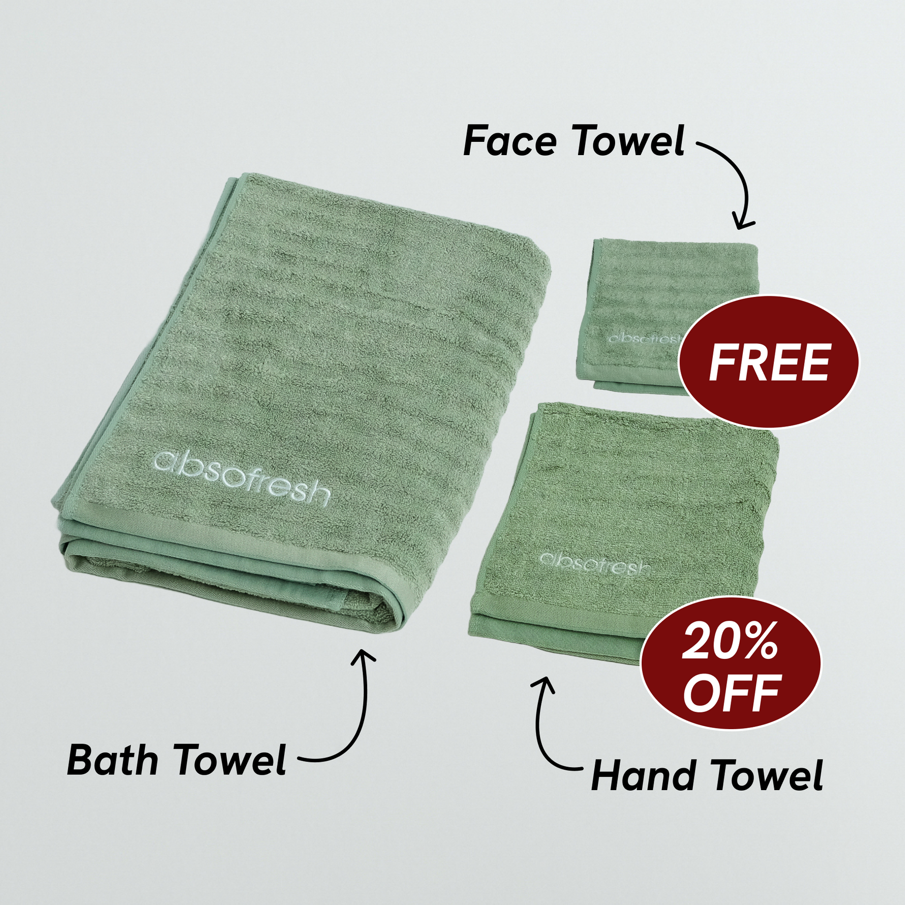 - Components: 1x bath towel, 1x hand towel, 1x face towel