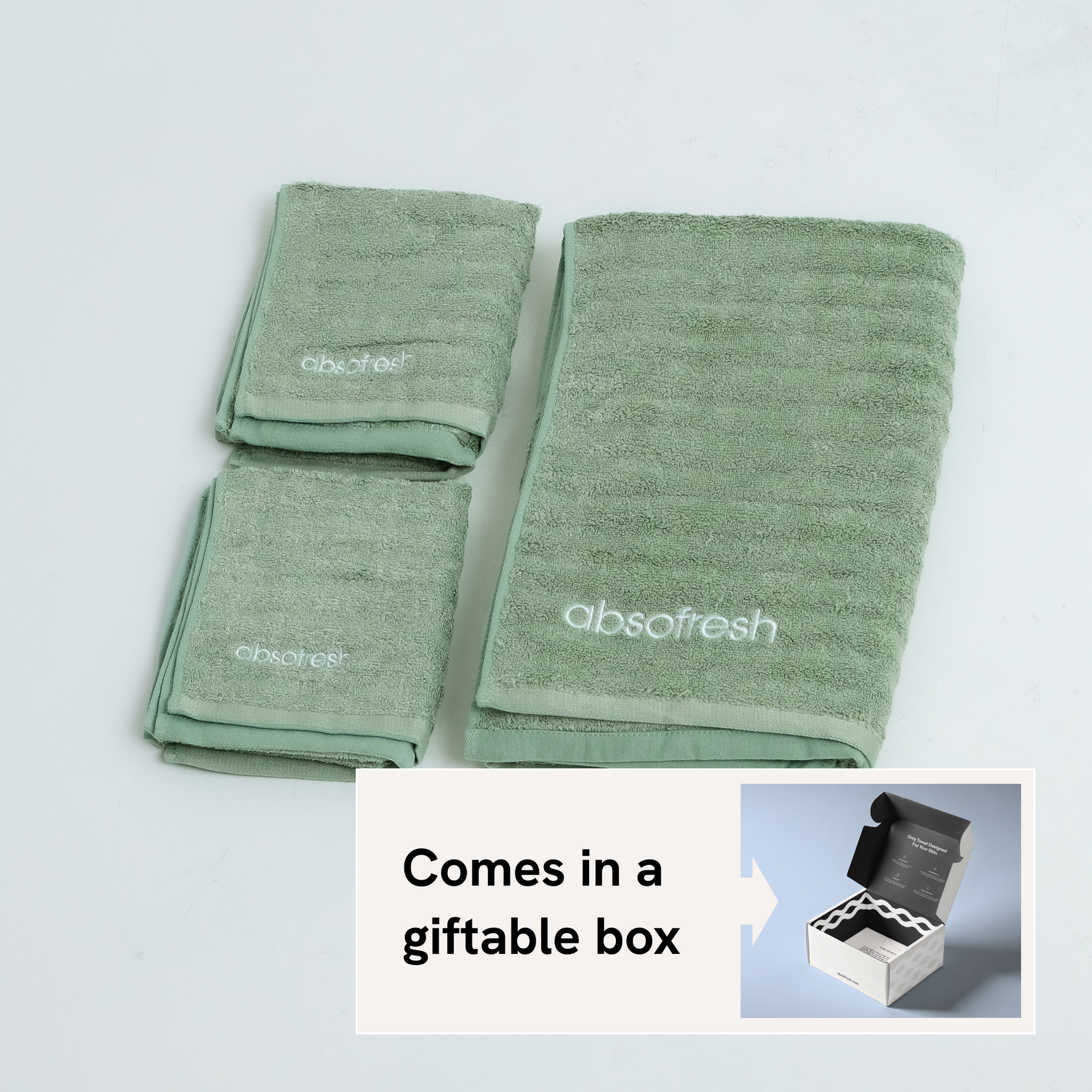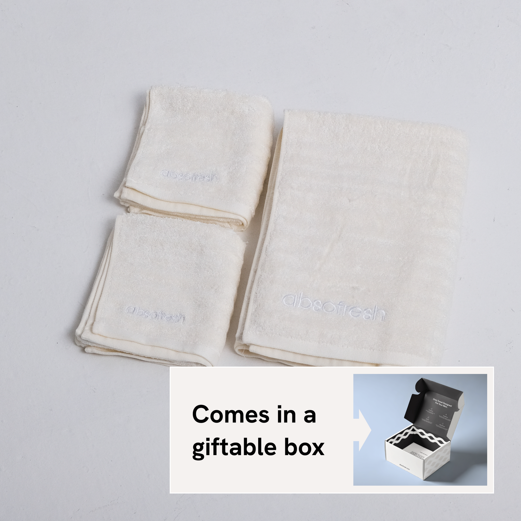 - Components: 1x bath towel, 2x hand towels